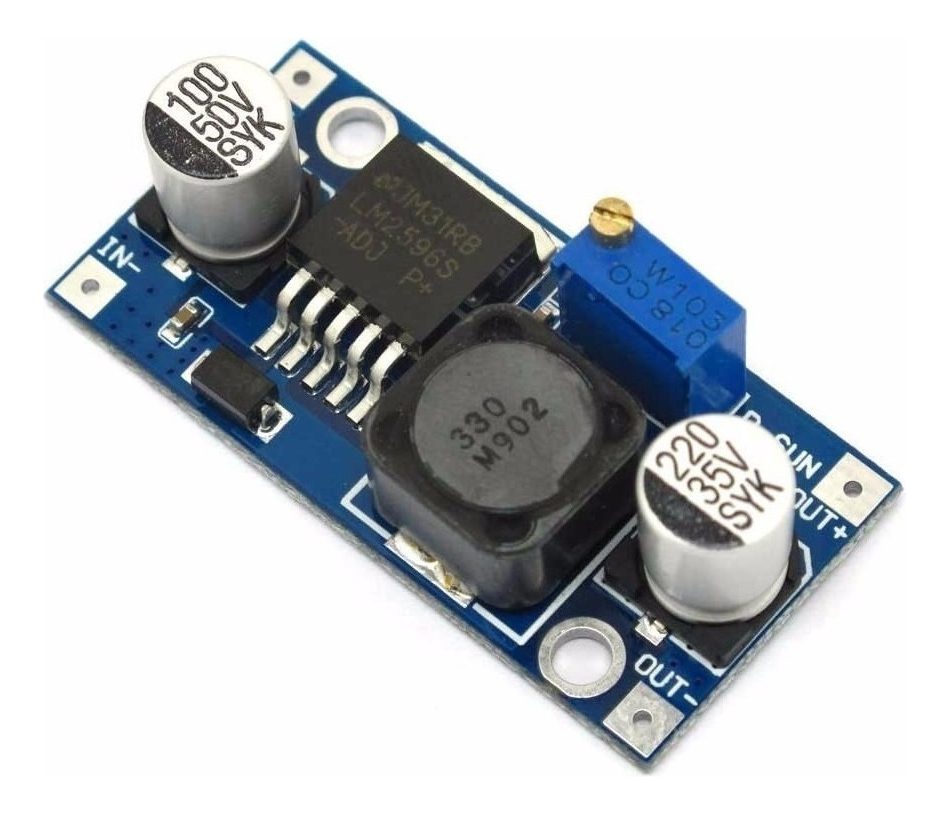 Es una fuente basada en el regulador step-down DC-DC LM2596. Posee un preset multivuelta de alta precisión y es capaz de alimentar una carga de hasta 3A con una alta eficiencia.