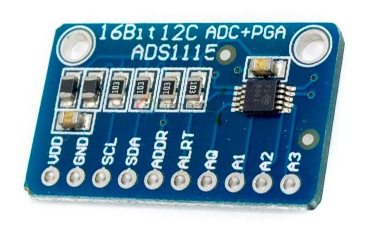 Para microcontroladores sin un convertidor de analogico a digital como el Raspberry Pi, o cuando se desea un ADC de mayor precision. Este modulo basado en el ADS1115 proporciona una precision de 16 bits a 860 muestras por segundo a traves de I2C.