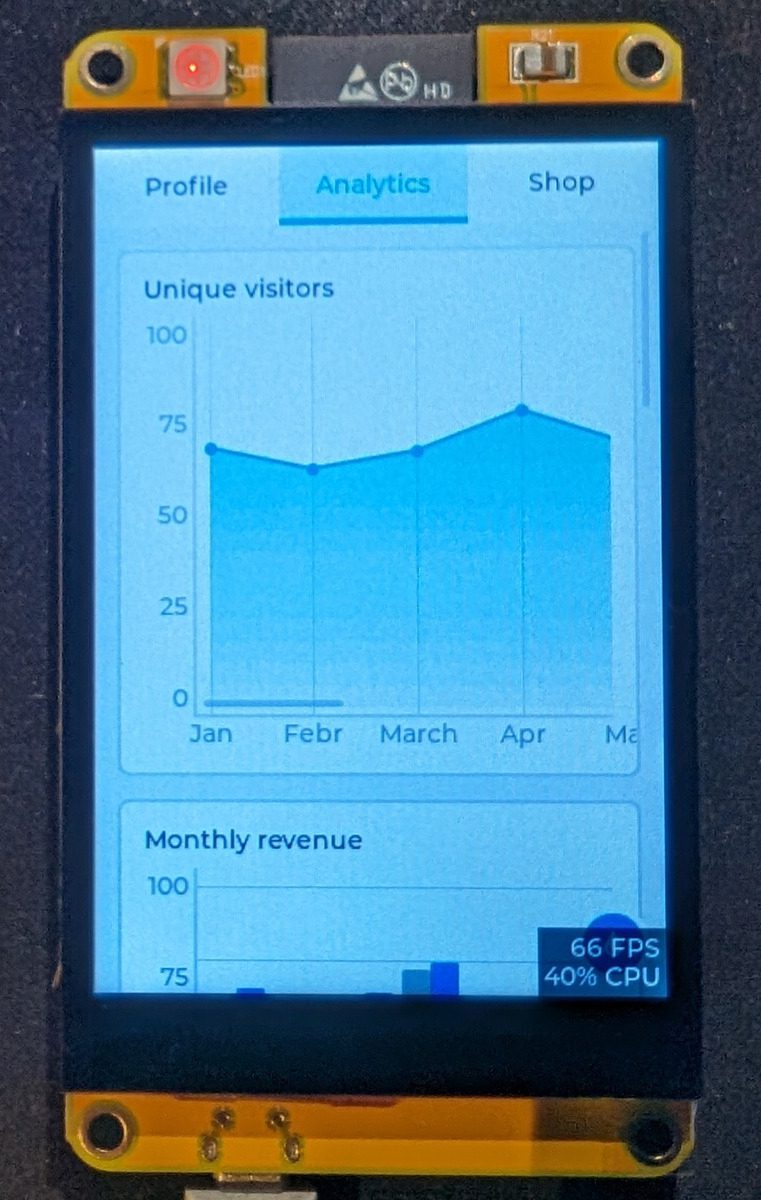 * Soporte completo para LVGL 8.3 con widgets profesionales