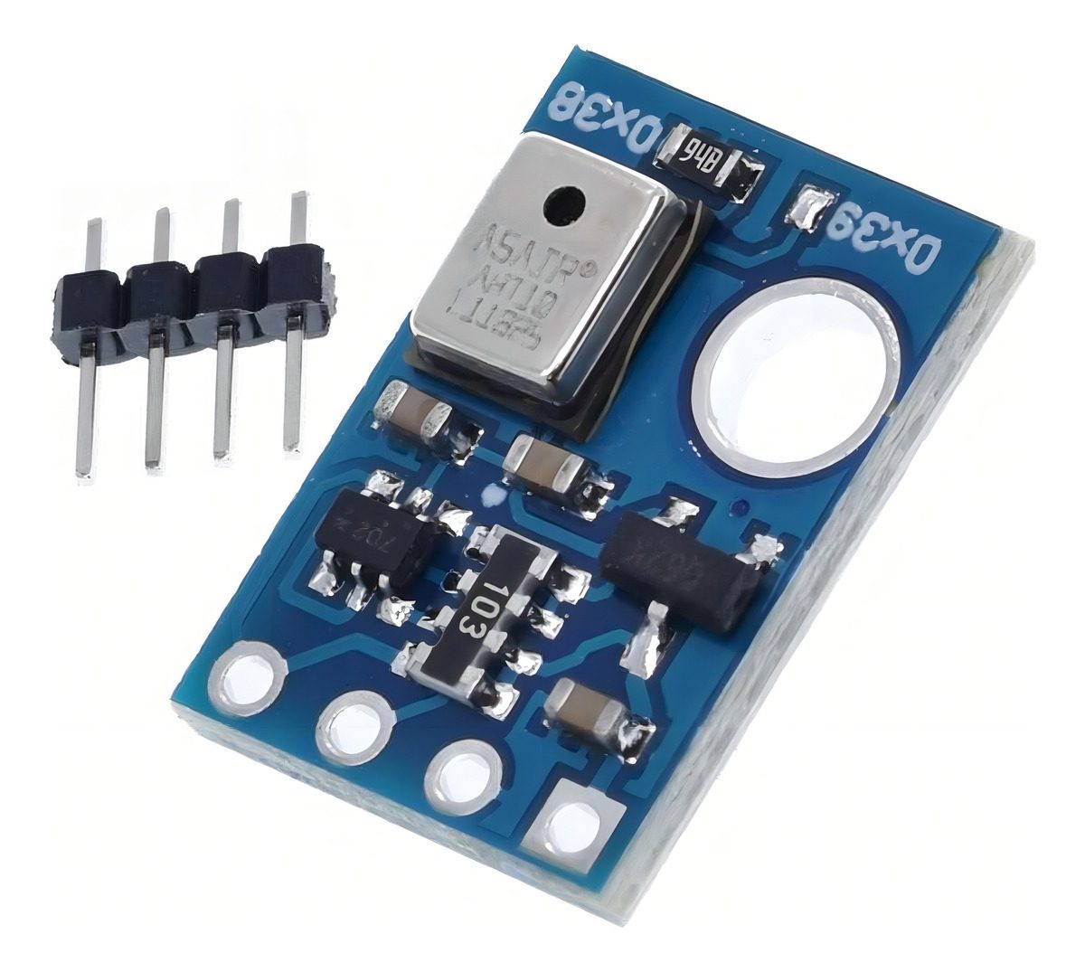 El sensor es compacto y se integra en un módulo que incluye regulador de voltaje de 3.3V, cambio de nivel lógico con una matriz de resistencias SMD de 10Kx4 (103) y un chip MOSFET de canal N dual de 6 pines, entre otros componentes SMD para su correcto funcionamiento. El módulo dispone de 4 pines, 2 para alimentación y 2 para comunicación I2C (Dirección 0x38 predeterminada), compatible con tarjetas de desarrollo como Arduino, NodeMCU, ESP32.