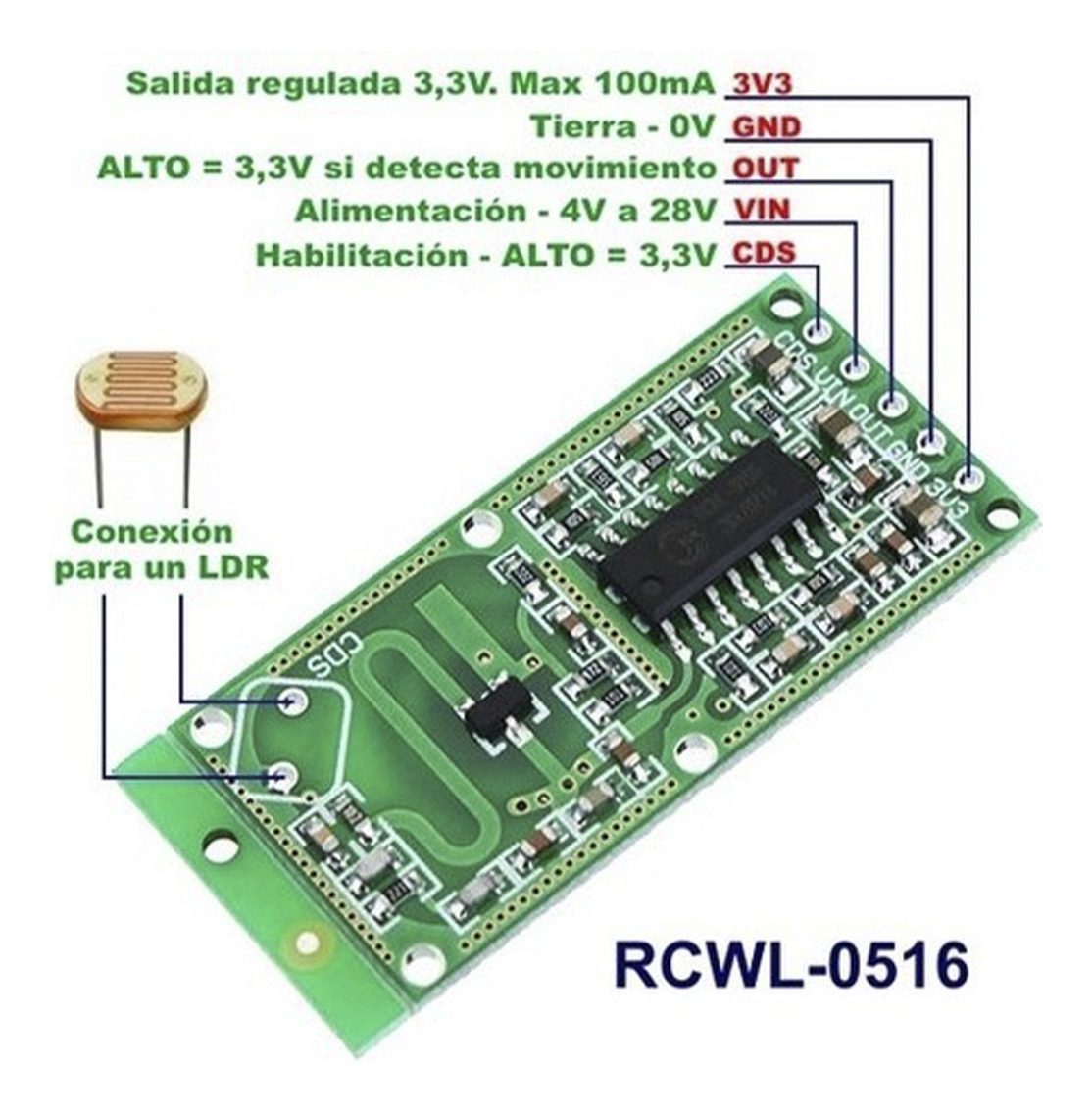 **Descripción: Sensor de Movimiento, Proximidad, Radar RCWL-0516**