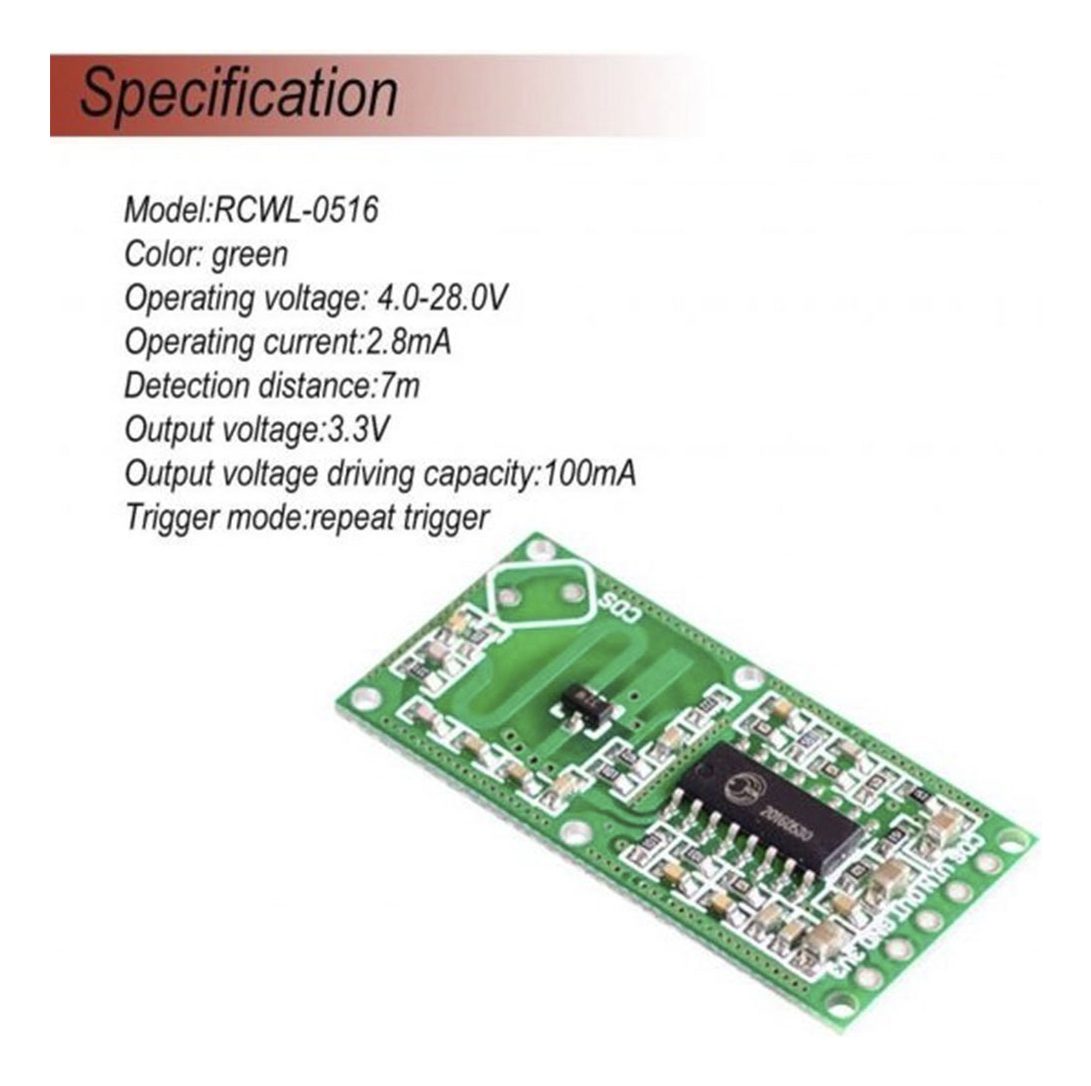 Este sensor es perfecto para una gran variedad de aplicaciones, incluyendo sistemas de seguridad para el hogar, automatización de la iluminación y muchos otros proyectos de domótica. Su tecnología de radar proporciona un rendimiento superior en comparación con los sensores pasivos tradicionales, ofreciendo un mayor rango de detección y precisión. Si buscas un sensor de movimiento confiable y versátil, el Sensor de Movimiento Radar RCWL-0516 es la elección perfecta.