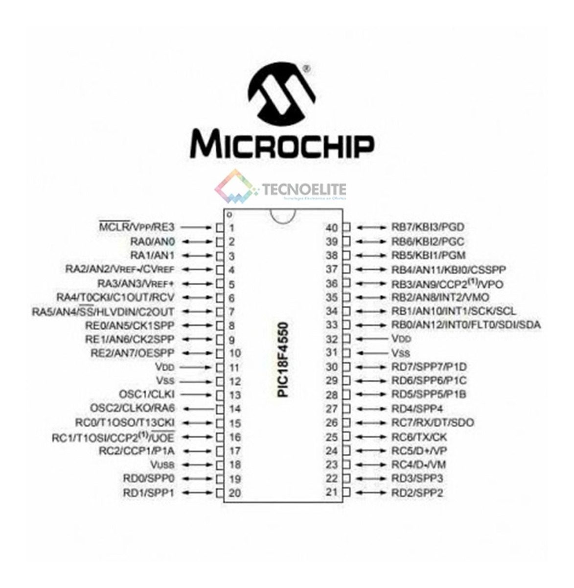 PIC18F4550 Microcontrolador Pic18f4550-i/sp Microchip