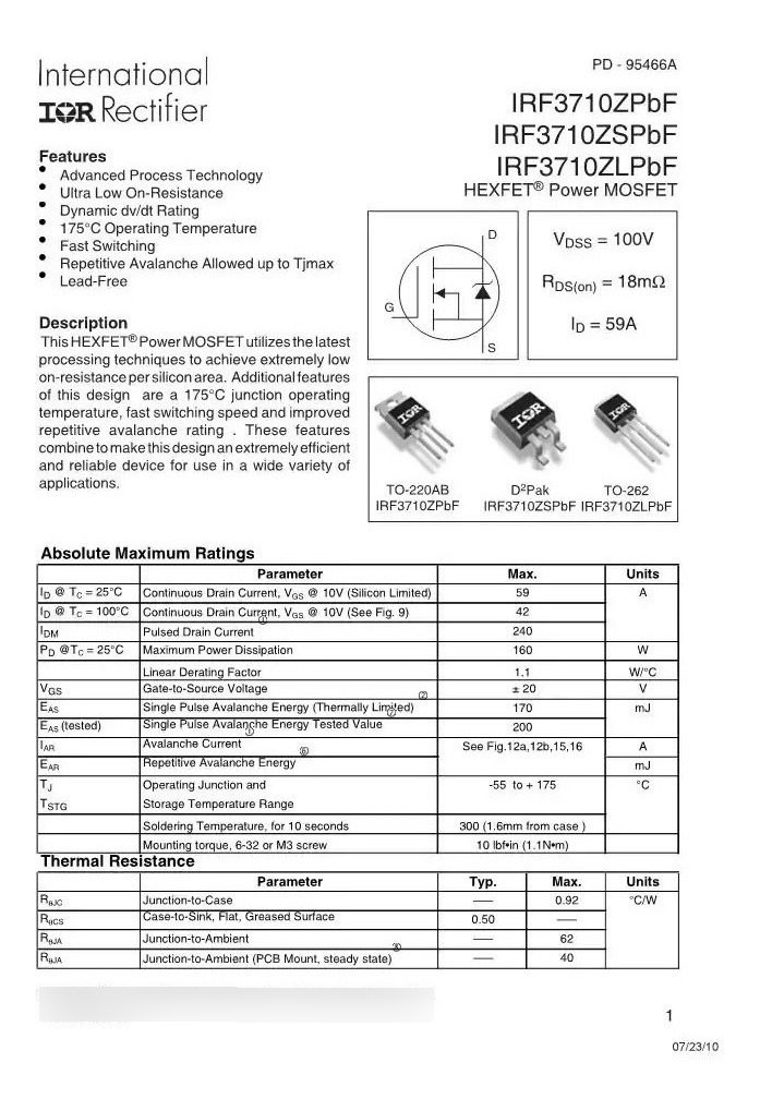 2 UNIDADES IRF3710 Transistor mosfet canal N 100V 57A